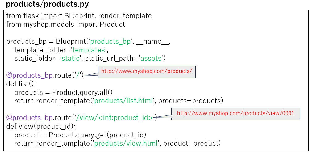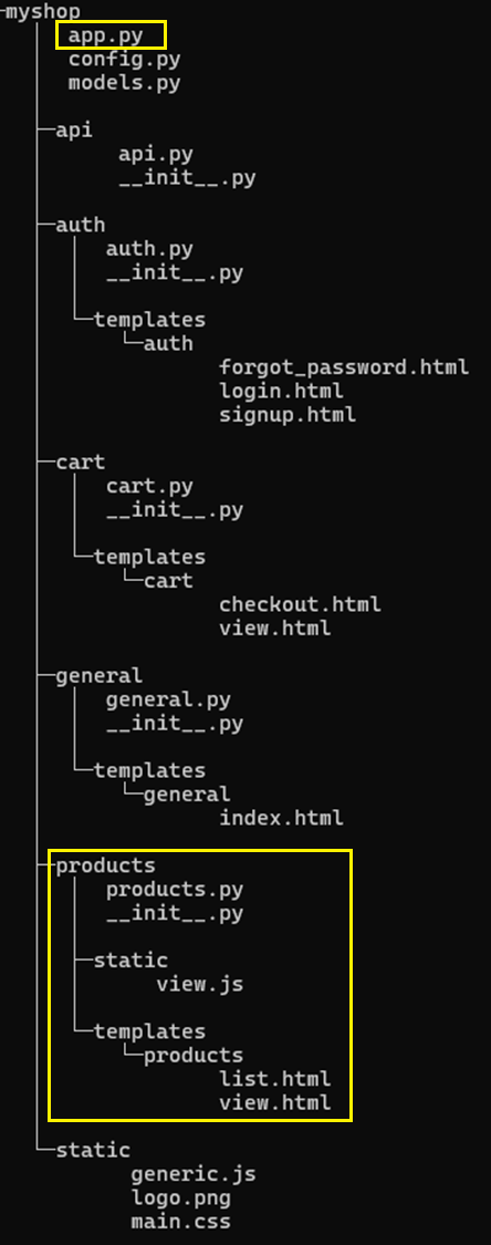 myshop 의 flask application의 구성을 아래와 같이 작성한다.