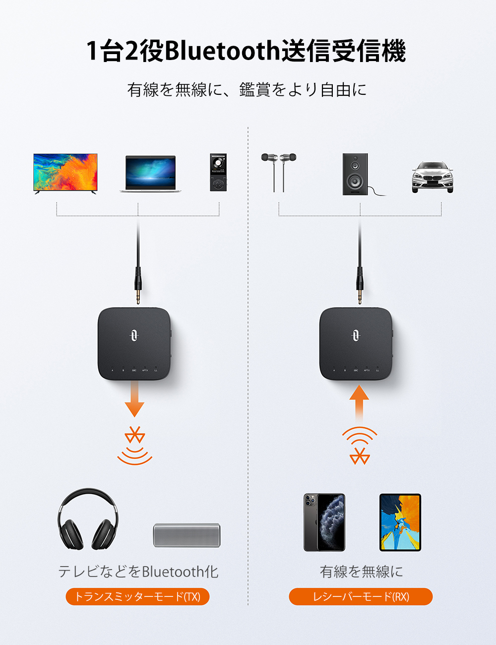 블루투스 기능이 없는 디바이스와 연결하여 송신(Tx)모드에서는 사운드를 블루투스 기기에 내보내는 역할을