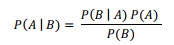 | B =여러가지 Evidence(=특징) A = Outcome(=결과) P(A | B) = 여러가지 Evidence가 있을 때 Outcome이 나올수 있는 확률(=Likelihood) ![]() |