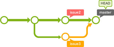 issue2 를 흡수한 상태로 issue3 분기로의 개발을 계속 하겠다는 의미이다.