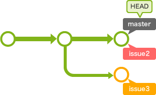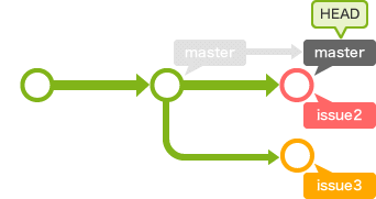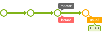 이후 issue3 의 작업이 끝나면 master 로 checkout 하여 issue3 를 merge 하면 된다.
