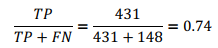 >>> recall_score(Y_test, prediction, pos_label=1)