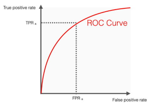 이때 곡선이 TPR 쪽으로 굽어 질수록 False Positive는 낮은 것에 비하여 True Positive 는 높게 나타나므로 좋은 모델이라 볼 수 있다. 따라서 곡선밑의 면적이 넓어지게 된다.