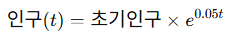 시간 t가 지날수록 인구는 이렇게 불어납니다: