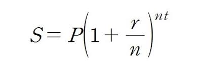 S : t 년후의 원리합계, P : 원금, r : 이자율 , n : 연중 이자 적용 횟수