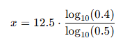 x = 12.5 x (0.6021 - 1) / (0.6990 - 1) = 12.5 x 1.32 = 16.5 억년