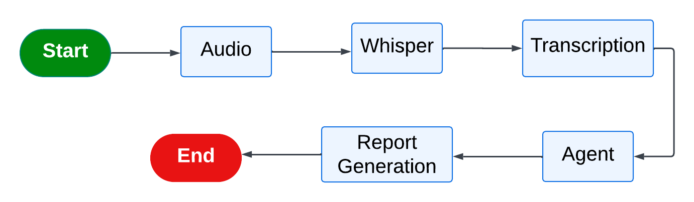 목표는 영업 통화의 오디오를 텍스트로 변환하고, 자연어 처리(NLP) 기술을 활용해 전사된 내용을 분석하며, 감정 분석, 핵심 문구, 고객의 문제점, 개선을 위한 제안 등을 포함한 상세한 보고서를 생성.