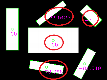 보통 단락은 Width > Height 관계라 생각했을때 출력 될 수 있는 각도는 빨간원의 형태라 볼 수 있고 본 샘플의 결과가 -87.323 의 각도이기 때문에 위 그림에서 맨 밑의 -79.958 과 비슷한 형태로 기울어져 있음을 알수 있다.