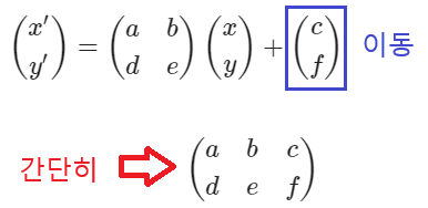여기에 회전후 좌표 이동까지 고려한다면 아래와 같다.