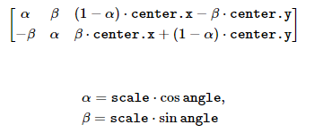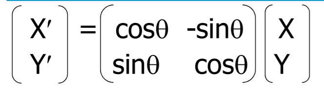 회전시(반시계 방향)의 변환 매트릭스는 아래와 같다.