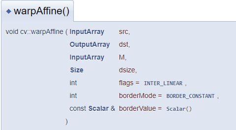 위의 매트릭스를 이미지에 적용하는 함수는 warpAffine() 이다.