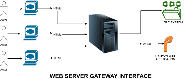 이러한 어플리케이션을 웹서비스를 하는 경우에는 앞에 WSGI(Web Server Gateway Interface) 인 apache 나 nginx 를 설치 연결하여 사용하여야 한다.