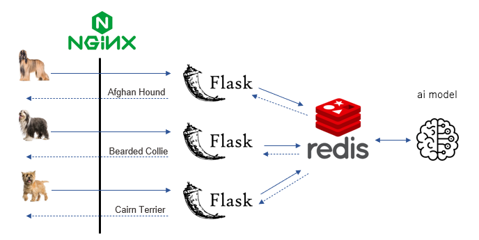 대안으로써는 별도 추론 쓰레드를 생성하여 모델을 한번만 로딩하고 브로커(redis)를 사용하여 Rest API Request 와 추론쓰레드간의 중계역할을 해주도록 한다.