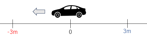 위의 그림으로 보면 오른쪽의 3m 위치이지만 수학적으로 표현을 하면 아래와 같이 된다.