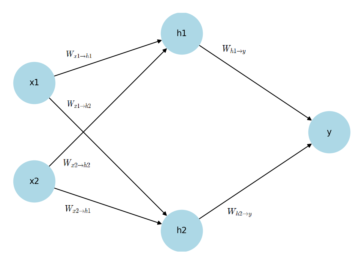 - 은닉층(Hidden Layer): h1,h2h_1, h_2