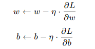 Backward: 각 파라미터의 gradient 계산 (∂L / ∂w, ∂L / ∂b)
