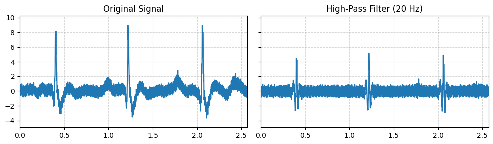 ax2.set_title("High-Pass Filter (20 Hz)")